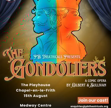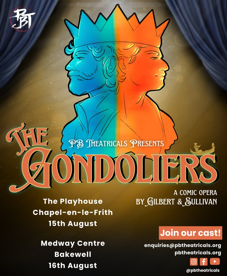 One of Gilbert and Sullivan’s most grandiose shows, The Gondoliers is the focus of our 2026 flagship summer programme. One week of concentrated rehearsals will take us from auditions to performances!